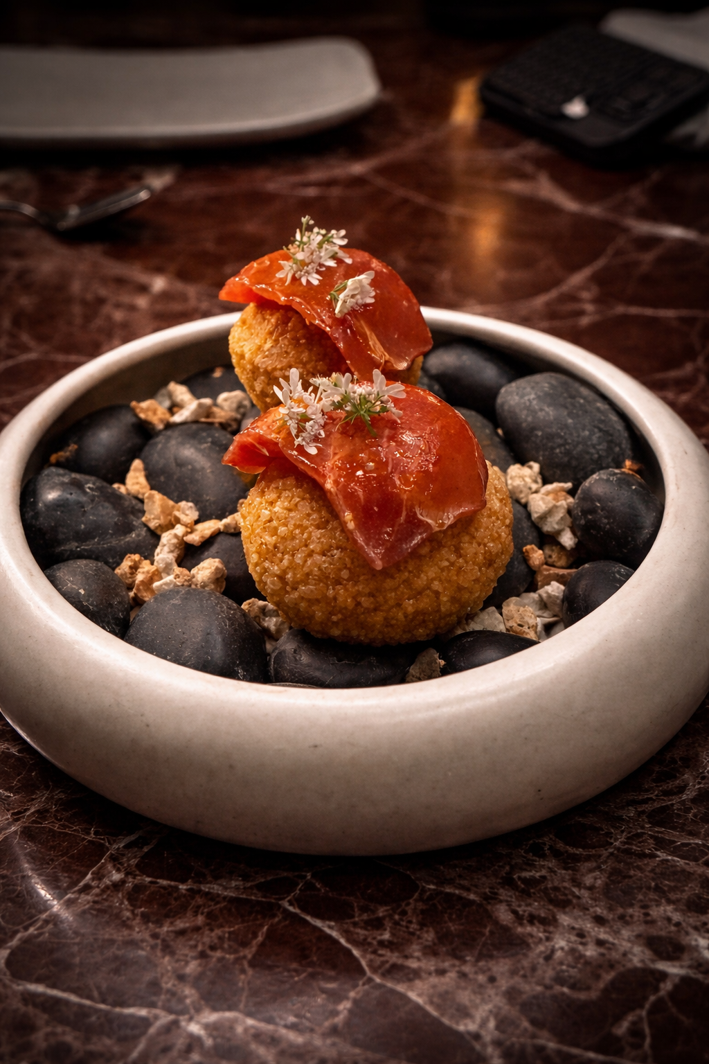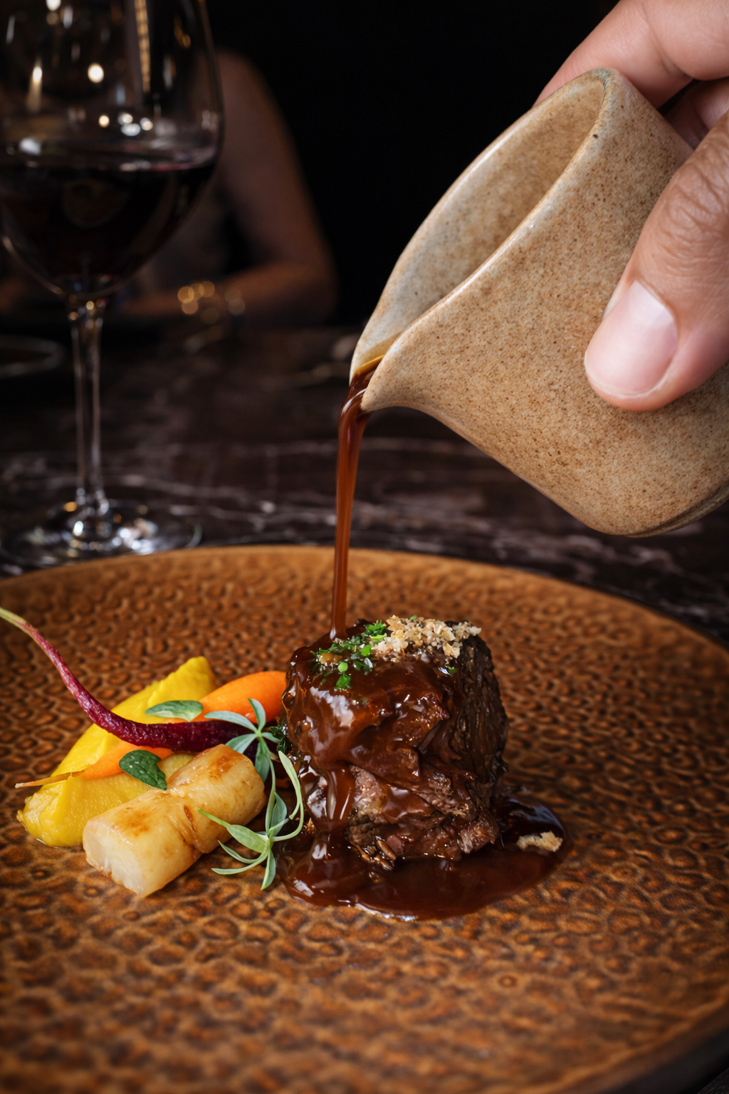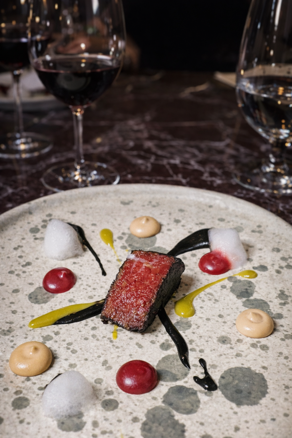 The service is impeccably staggered. Courses arrive with flawless timing. Wine pairings feel intuitive. The staff moves with quiet confidence and precision.